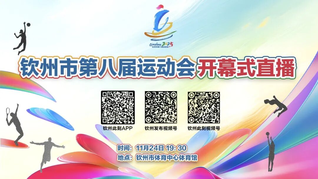 欽州市第八屆運動會于2025年11月24日(星期一)19點30分,在欽州市體育中心體育館舉行。屆時,欽州發布視頻號、欽州此刻APP、欽州此刻視頻號將全程直播,敬請期待!